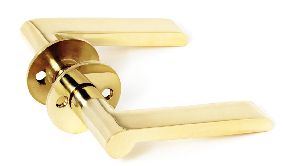 Dørgreb Spitzer Poleret messing , med rosetter cc30 og nøglehuller ( 2 stk Tilbage )