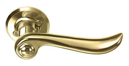 Klassiskt dörrhandtag. Mittavstånd 30 mm för 3 -punktslås, Ruko / Assa -modullådor eller Boda mittdörrlås. Levereras i set, inklusive dörrhandtagstappar och genomgående skruvar med hylsmutter. Dörrhandtaget har en returfjäder i en fast rosett som även kan användas för ett 3-punktslås