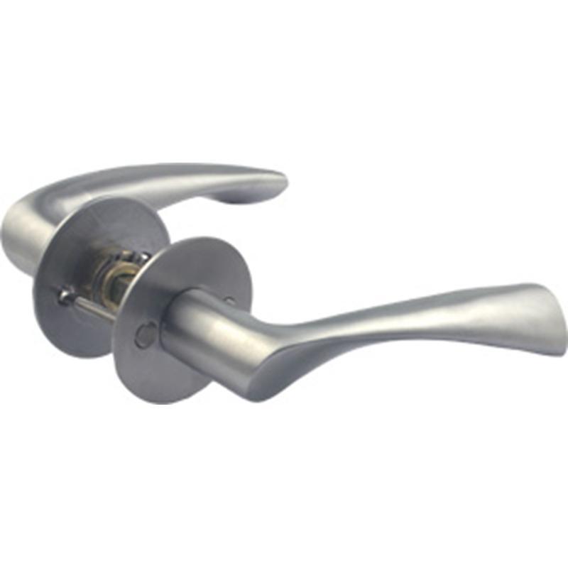 Luksus dørgreb i rustfrit stål. med fastsiddende roset og gennemgående skruer.