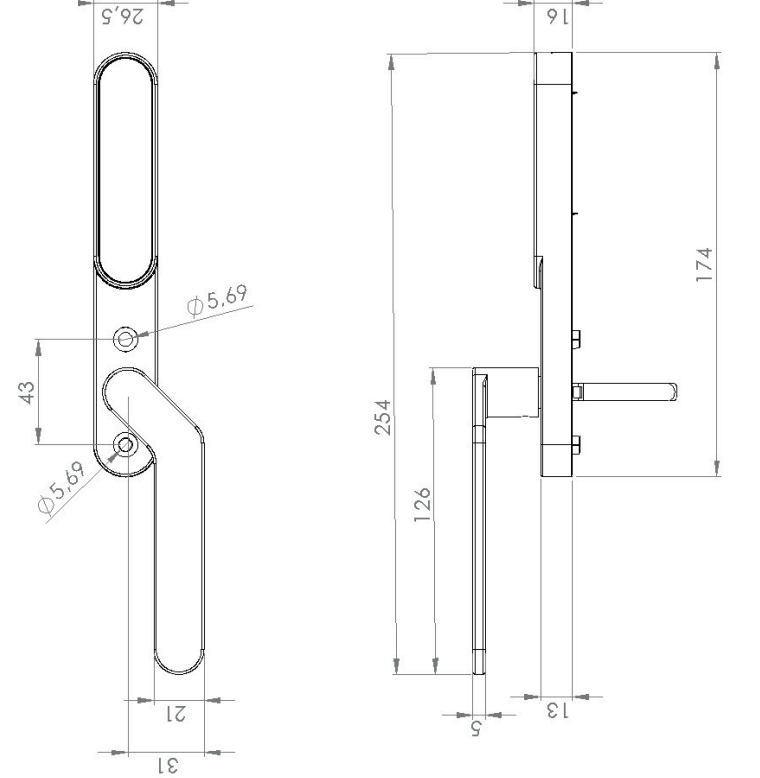 Du kan også vælge et sæt med udendørs greb (Dummy) du styrer bare det hele fra TLF så du kan låse dig ind selv om du står på den udvendige side.