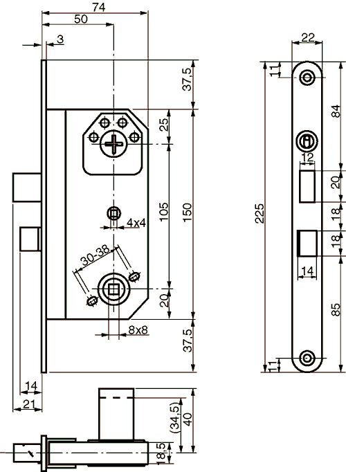 Fälla och bultlås med tvångsstyrd bult. Bulten har ett 21 mm utsprång i ett varv när nyckeln vrids 360 °. Vändbart fall. Låset måste monteras tillsammans med långplatta 4294 eller säkerhetslångplatta 4292 på insidan, samt Rukos normala cylinder, cylindertillbehör och dörrhandtag.