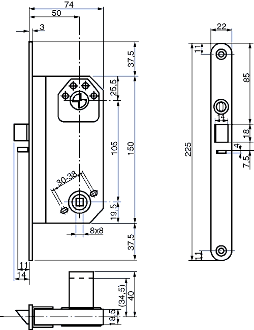 Falllås med automatisk stängning på fällan med hjälpfälla. Fällan kan ställas in i beredskap med en omkopplare. Låset levereras med en lätt dörrhandtagfjäder för nödutgångsfästen. Vändbart fall. Låsfodral, stolpe och fälla av zinkbehandlat stål. Kan levereras som Heavy Duty, 70 mm dornstorlek och med mikrokontakt