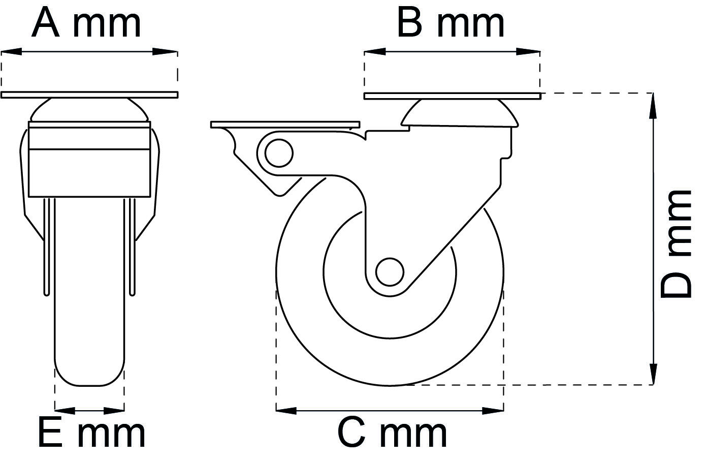 MØBELHJUL M/PLADE/BREMSE SORT 75 MM