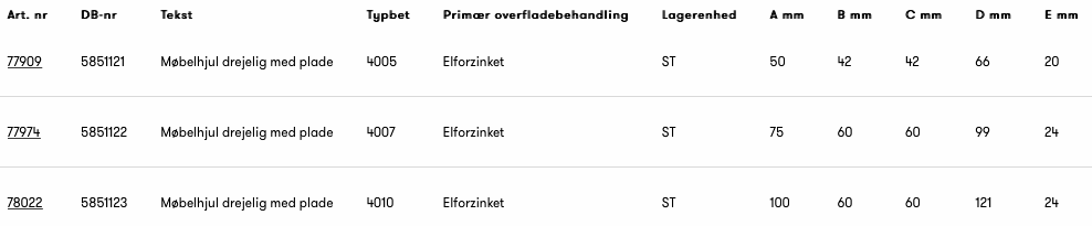 Møbelhjul drejeligt med plade, 60x60 mm. Grå. Ø75 mm. Maksbelastning 55kg. (Beregnet værdi - garanteres ikke).