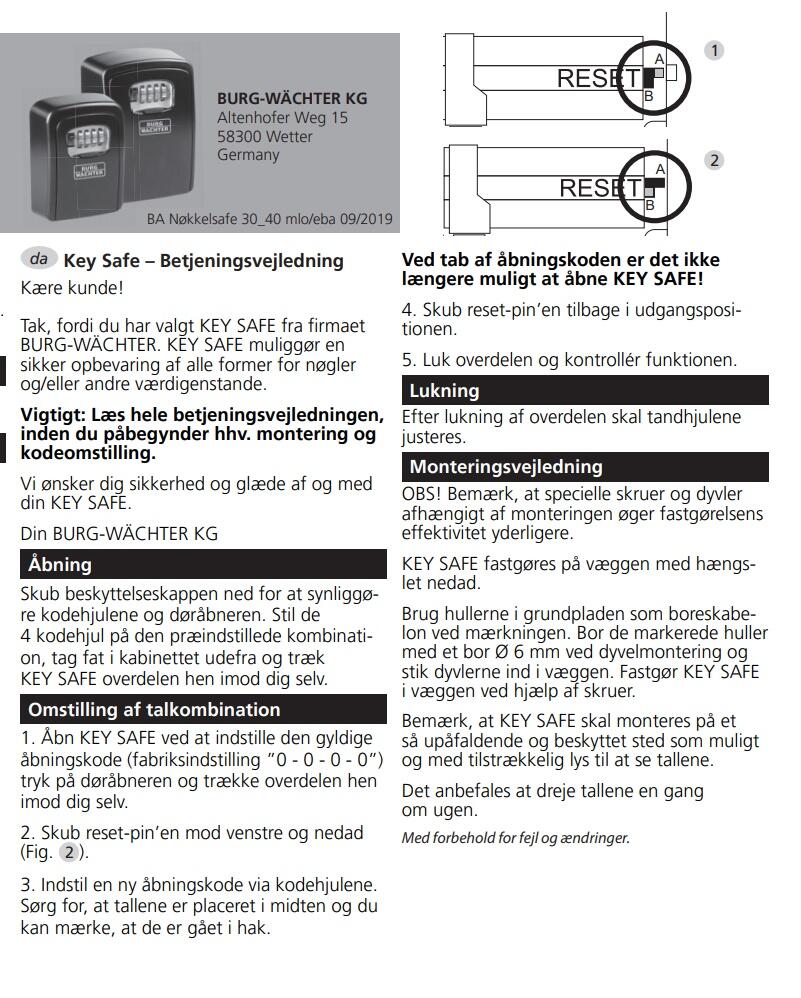 - Burg Guard nyckellåda Key Safe 20 SB