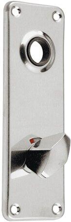 Inuti lång skylt för lås på toalettdörrar. Lång skylt med vridhandtagshål för dörrhandtag, inuti vit / röd markering. Monteras med 4 st. träskruv Ø3,5.