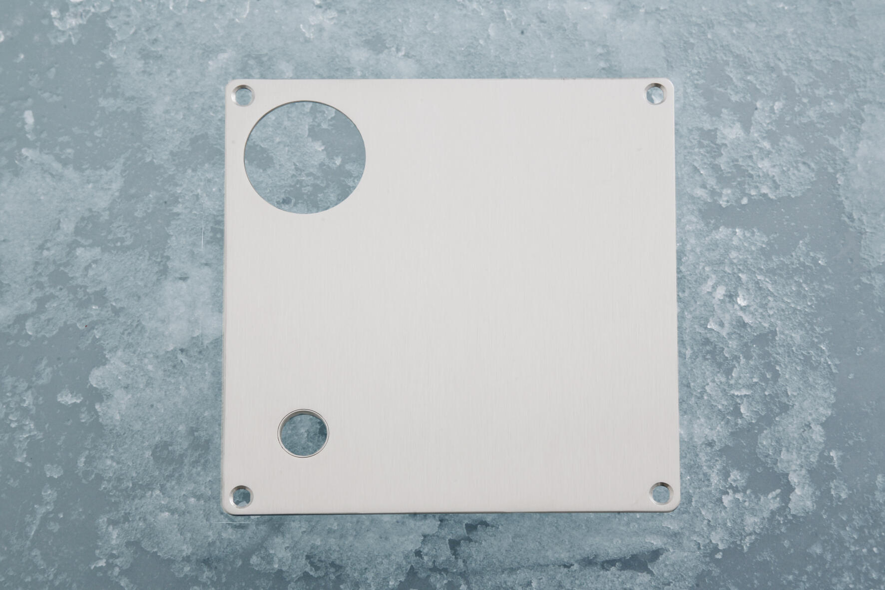 Fyrkantig skylt med hål för dörrhandtag och 40 mm hål för vridhandtag eller cylinderring som passar Connect och modullås.