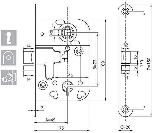 • Mellemdørlås 2014 incl blik nøgle  skruer   MPU   20 x 149mm