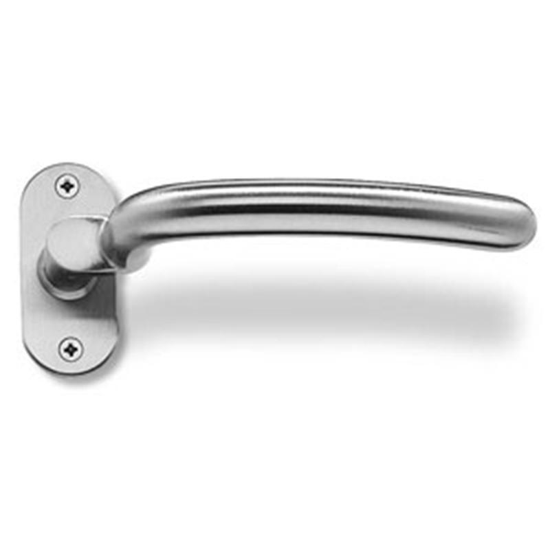 Enkelt og ergonomisk dørgreb, Ø16 mm. massiv, til smalprofildøre. Leveres som standard i matbørstet rustfrit stål ( AISI 304 )