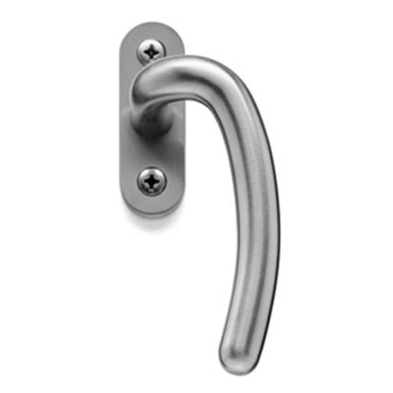 Forkrøppet vinduesgreb i ø14 mm. Leveres som standard i matbørstet rustfrit stål (AISI 304 ) eller poleret messing. Fastmonteret roset, 22x65x3 mm. Huller for M5 skruer eller træskruer, centerafstand 43 mm. Leveres i stk inkl. M5 skruer.