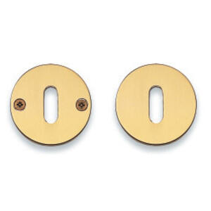 Randi nøglerosetter 3140Massiv rosset, ø50x2 mm. Leveres som standard i poleret messing. Med påsvejste gevingstudse, centerafstand 30 mm, synlige skruer på én side. Leveres i sæt inkl. M4x84 mm skruer.