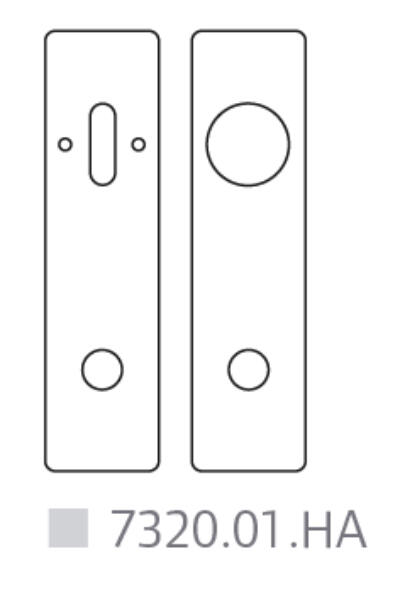 Langskilt 215x55x2 mm. Leveres som standard i matbørstet rusfrit stål (AISI 304) Dørgrebshul forneden. Huller for træskruer eller M4 skruer. Leveres i sæt ekskl. skruer.
