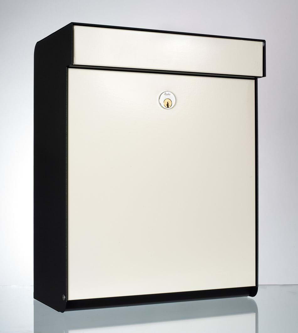 Spændende design, fremstillet i galvaniseret pulverlakeret stål, rustfrit stål eller kobber. Monteret med Ruko lås. Mål: HxBxD: 440 x 345 x 180 mm. Brevindkast 39x320mm. Brevindkast kan aflåses.