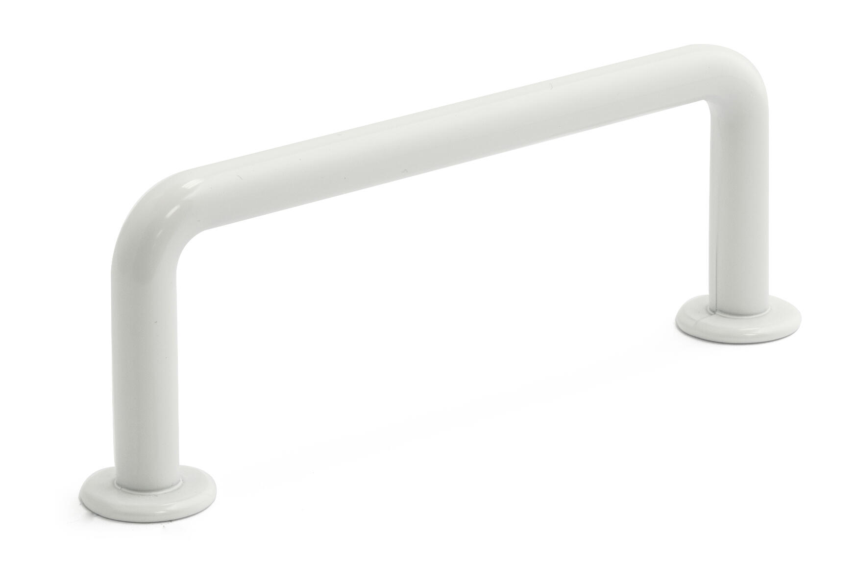 Møbelgreb i zink/zamak med hvid finish. Højde: 36 mm. Centermål: 86 mm. Skruer medfølger. Leveres i en 2 styks forpakning. Enkelt og klassisk greb til låger og skuffer.