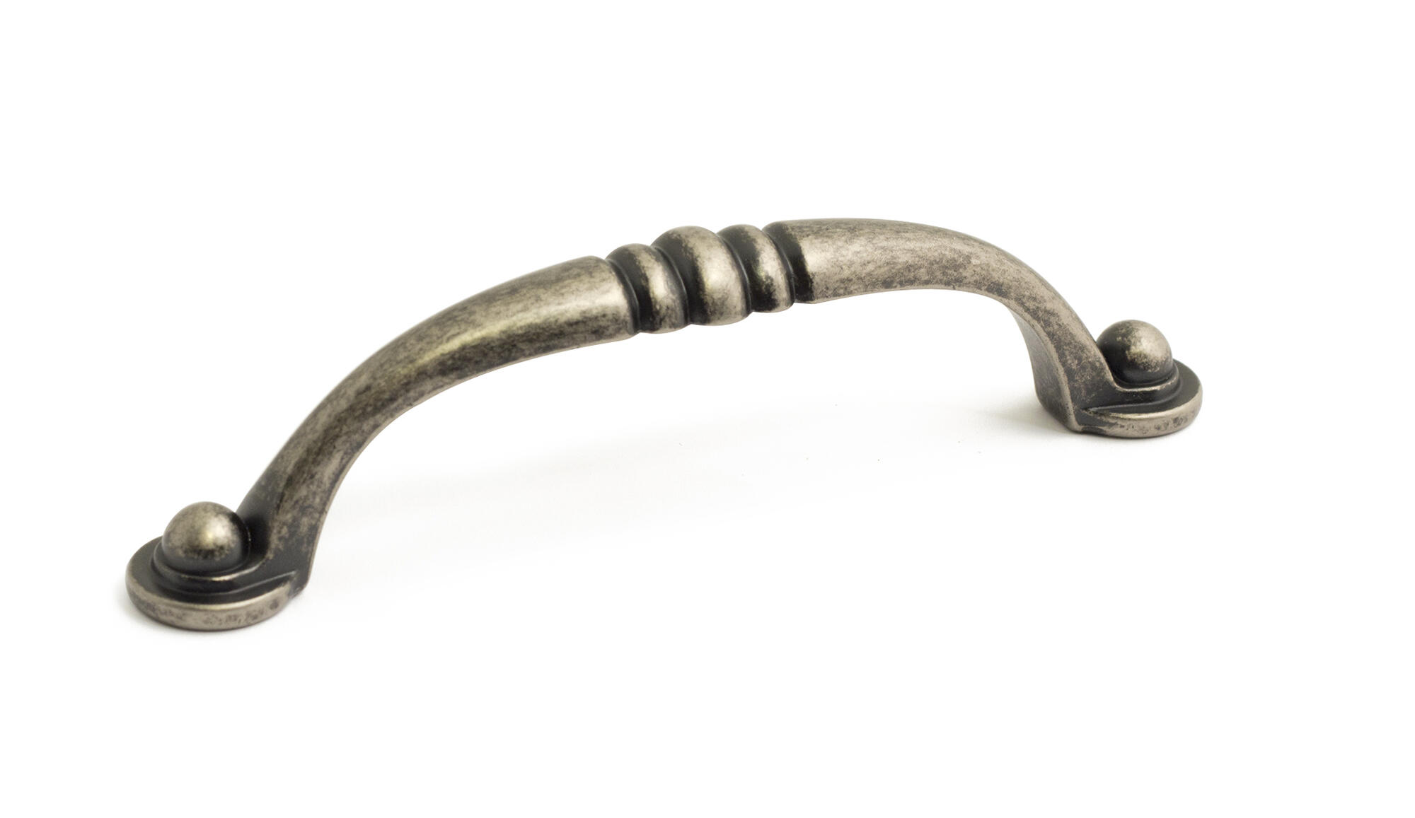 Møbelgreb i zink/zamak med tin finish. Længde: 110 mm. Højde: 27 mm. Centermål: 96 mm. Skruer medfølger. Leveres i en 2 styks forpakning. Et old fashion greb til låger og skuffer.