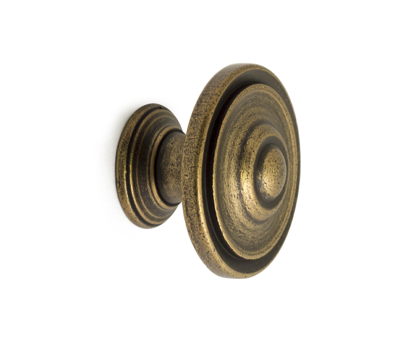 Møbelknop i zink/zamak med antik finish. Ø: 35 mm. Fremspring: 25 mm. Skrue medfølger. Leveres i en 1 styks forpakning. Flot knop til låger og skuffer.