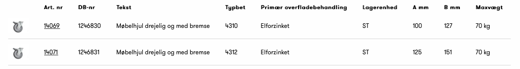 • MØBELHJUL SVINGB. STÅL M/BREMSE 125