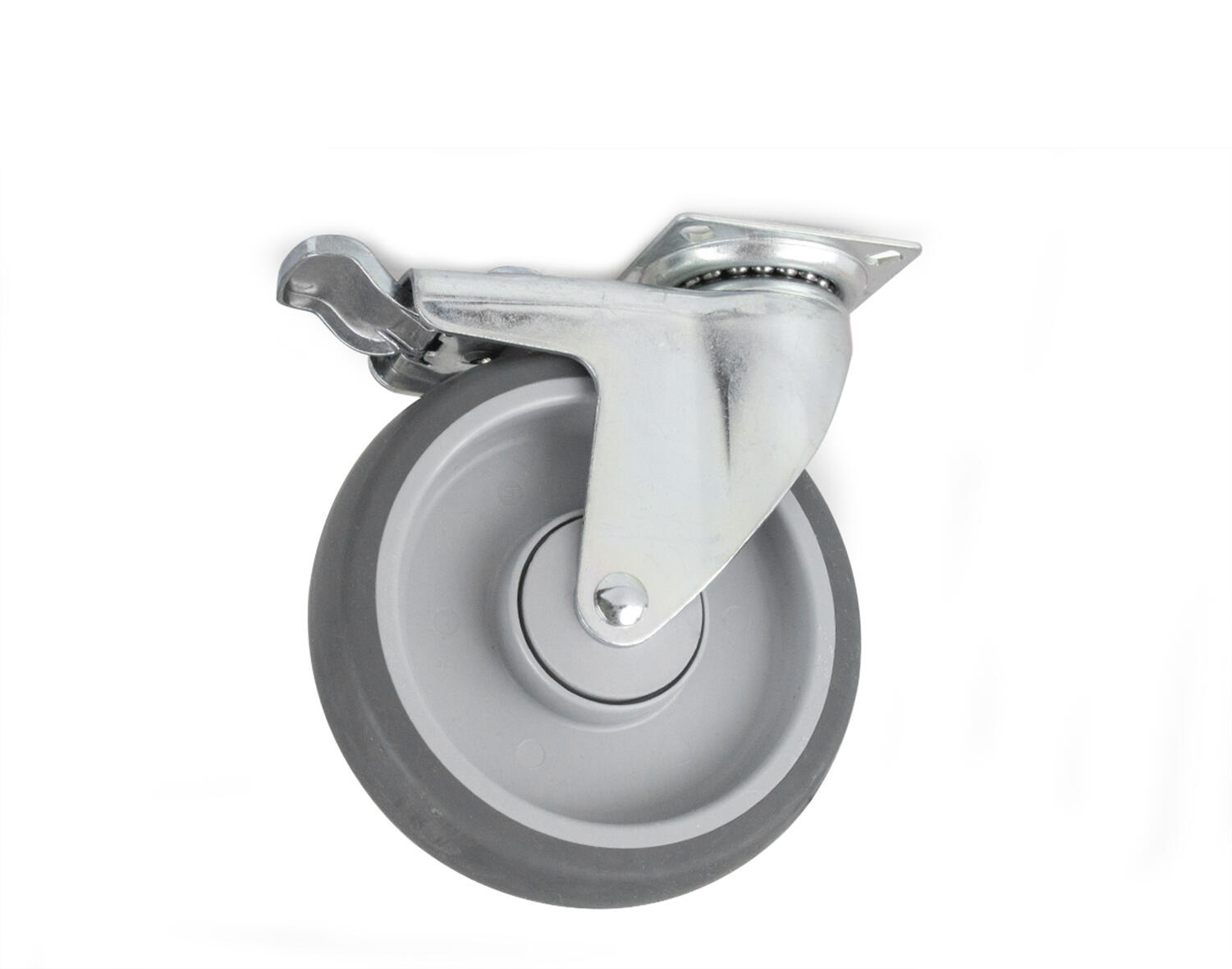 Møbelhjul drejeligt med bremse og plade, 60x60 mm. Grå. Ø125 mm. Maksbelastning 70kg. (Beregnet værdi - garanteres ikke).