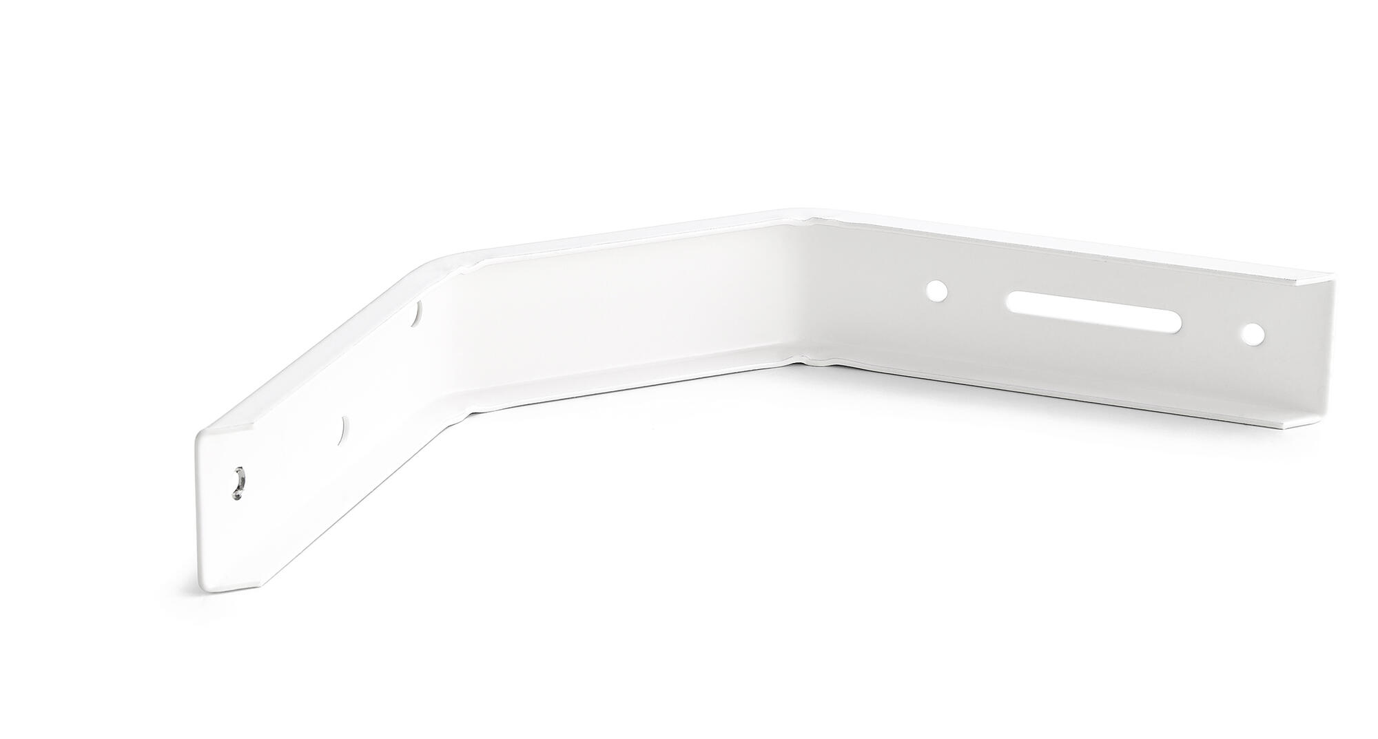 Vinduespladeholder i hvidlakeret stål. Mål: 100 x 165 x 110 mm. Anbefalet maxbelastning på 30 kg. er anslået og garanteres ikke. Leveres i en 1 styks forpakning.