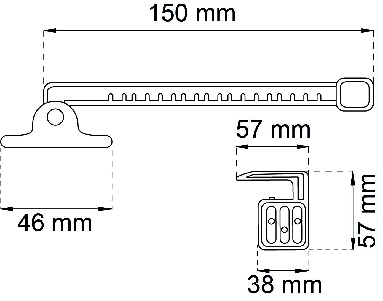 Vinduesholder af plast. Anvendes til indadgående vinduer. Børnesikret.