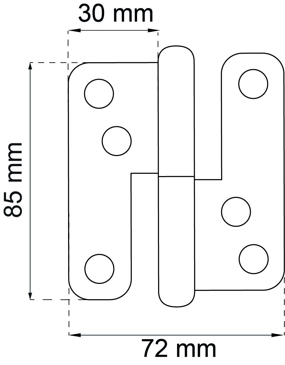 Dørhængsel (hamborghængsel) af stål. Venstreudgave. Skruer medfølger. 85 mm. Pakke a 2 stk.