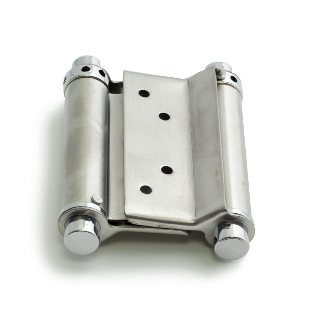 Dobbeltvirkende svingdørhængsel af stål med justérbar lukkekraft. Styrke 22 kg. Dimension 100 mm. Dørtykkelse 26-30 mm. Dørbredde maks. 700 mm.