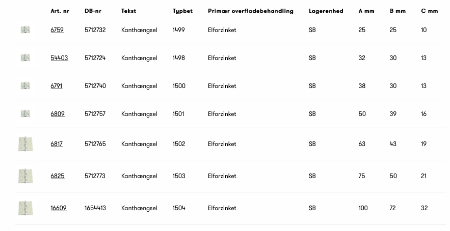 Hængsel af stål med messingbolt. Skruer medfølger. Pakke a 2 stk.