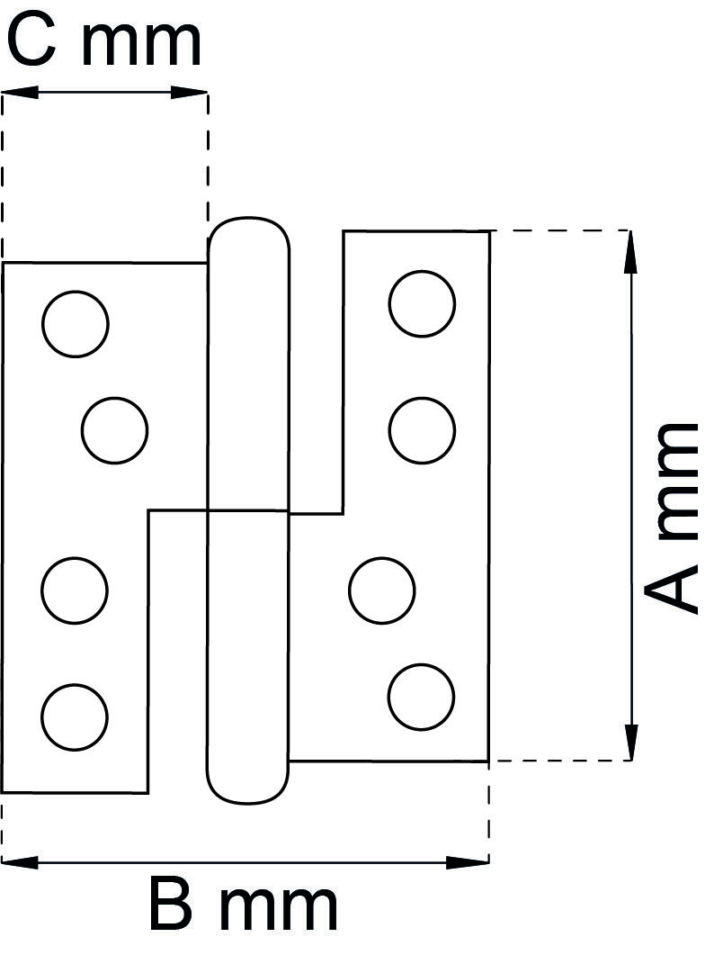 Dørhængsel (hamborghængsel) af stål. Venstreudgave. Includert skruer. Pakke a 2 stk.