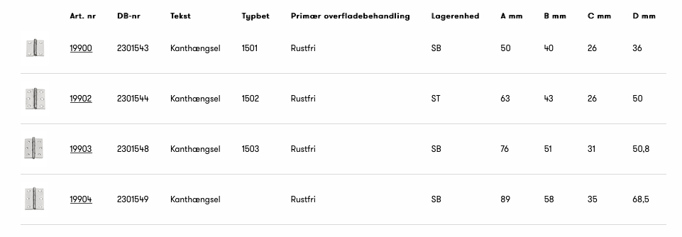 Kanthængsel af rustfrit stål. Leveres med skruer. Pakke a 2 stk.