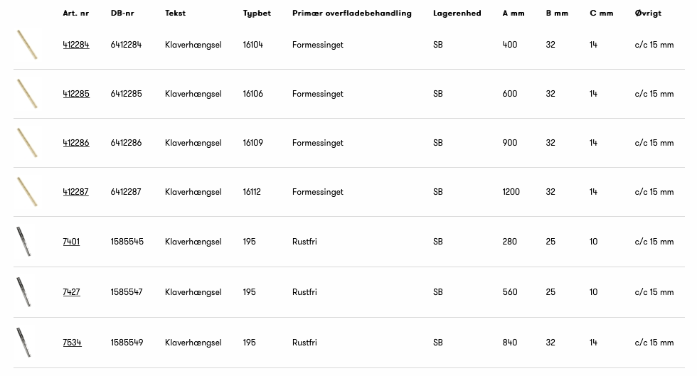 • KLAVERHÆNGSEL FORMESSI. 600X32MM