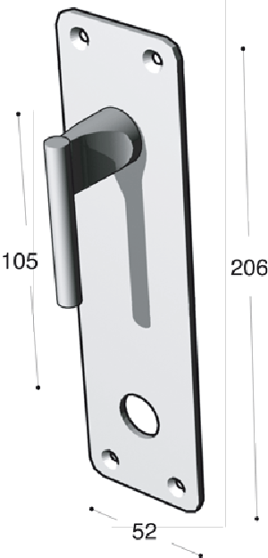 Mått: 2 x 52 x 206 mm. Mittavstånd: 105 mm. Levereras inkl. bärar- och cylinderskruvar. Ruko-Line är tillverkat av borstat syrafast rostfritt stål AISI 316L.