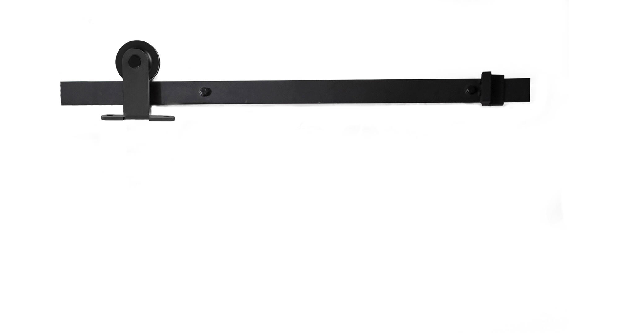 Komplet skydedørsbeslag i sortlakeret stål. Til vægmontering. Let at montere til både "gør det selv" og professionelle. Robust og industrielt design. Leveres med 2 topmonterede skydedørsruller, 2 meter flad skinne, 1 styreskinne til glasdør, 1 styreskive til trædør, 2 stopbeslag, skruer og monteringsvejledning. Beregnet til dørbredde maks. 100 cm. Dørvægt maks. 100 kg. Passer til døre med dørblade 35-45 mm.