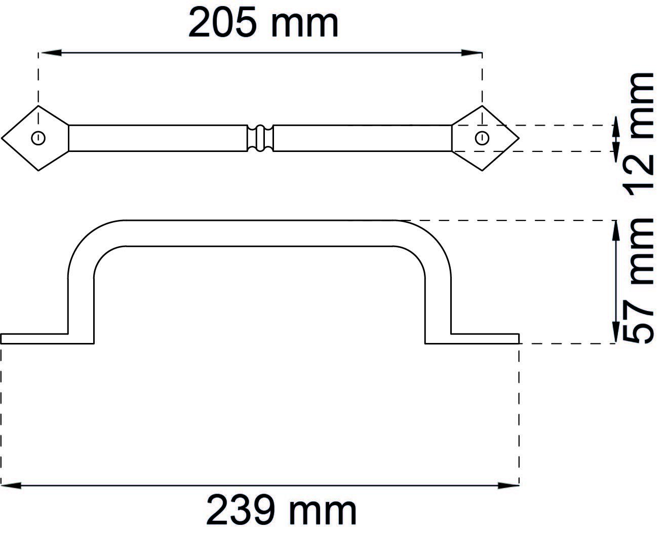 Skydedørsgrep af smedejern med rustik og landligt karakter. C/c 205 mm.