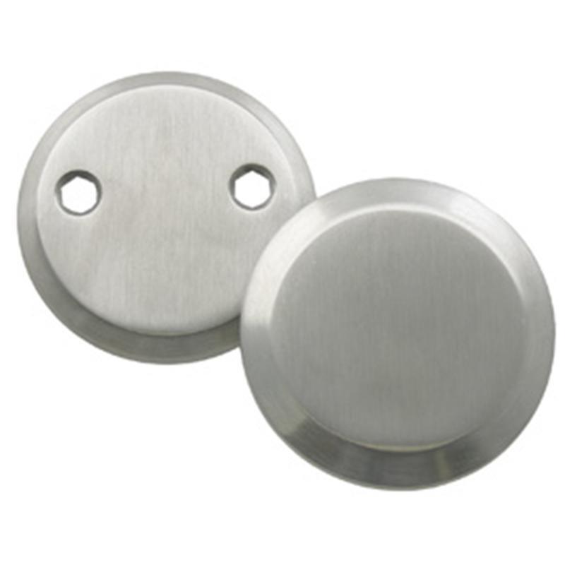 Ind- og udvendig blindrosetter i massiv poleret eller rustfrit stål til montering over cylinderhullet på døre, hvor der ikke ønskes vridergreb og cylinder. Leveres i sæt inkl. gennemgående skruer.