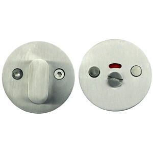 Toiletbesætning i rustfrit stål med Ø 52 x 2mm.massive rosetter med synlige skruer. Centerafstand 30mm. Leveres i sæt incl. gennemgående skruer. Passer til dørtykkelse 35-55mm.