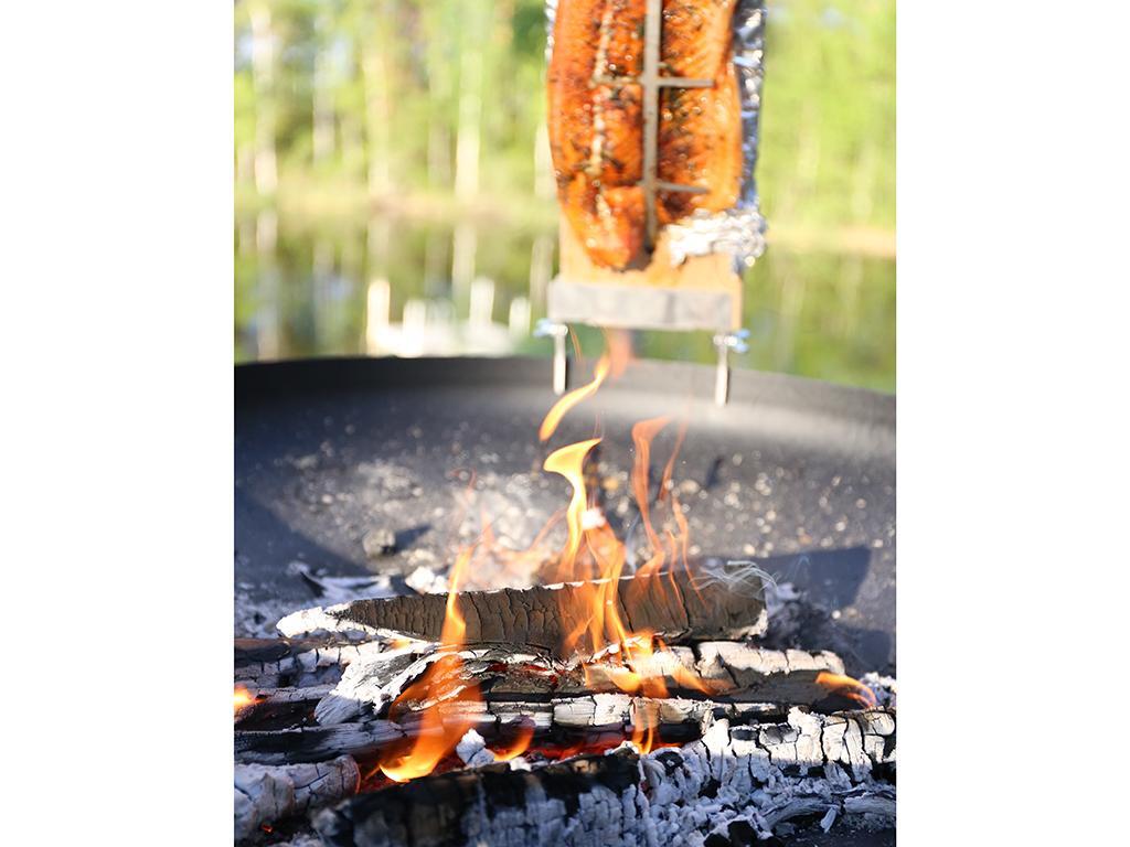 Stegebrættet leveres med et stativ til montering af stegebrættet på siden af bålpladsen. Fiskefileten osv., du skal stege, placeres mellem brættet og fastgørelsesstammen. Passer til alle Tundra Grill ildsteder og Muurikka ildsteder som tilbehør.