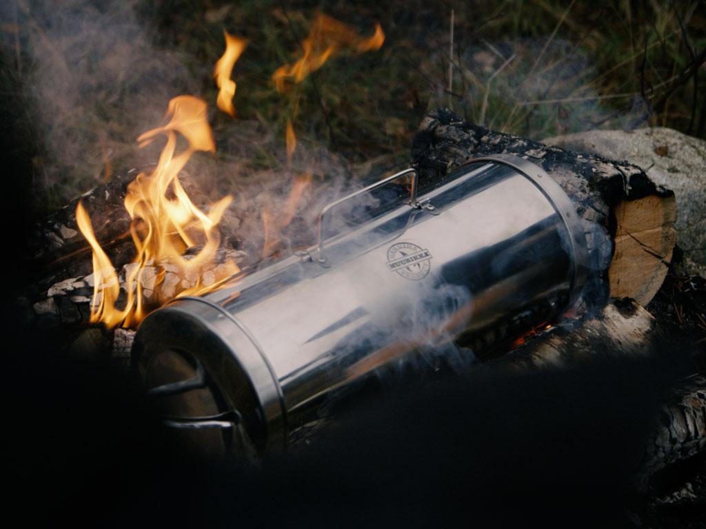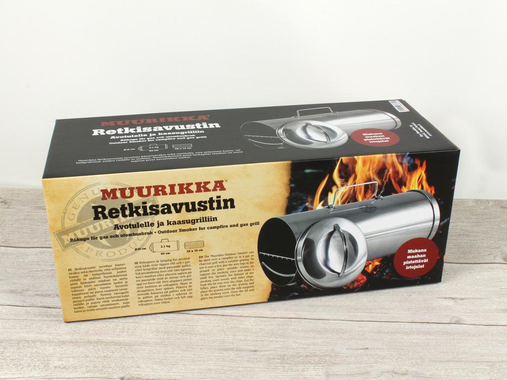 Bedømmelse af juryen for Scandinavian Outdoor Award: Hvis du elsker at ryge din egen fisk, kød eller grøntsager, når du er på vandretur eller camping, vil Muurikka Outdoor Smoker være perfekt til dig. Dens kompakte mål (40 x Ø 16 cm) og den ret lave vægt (omkring to kilo) gør den nem at have med i en pakke eller kano. Den er lavet af rustfrit stål og har en drypplade under risten cylindrisk, hvilket gør det nemmere at rengøre rygeren.