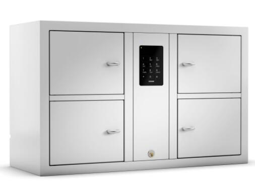Brugervenligt og praktisk værdisagsskab med 4 opbevaringsrum og enkelt login med brugerkode. Koder programmeres via enkle kommandoer med tastaturet.