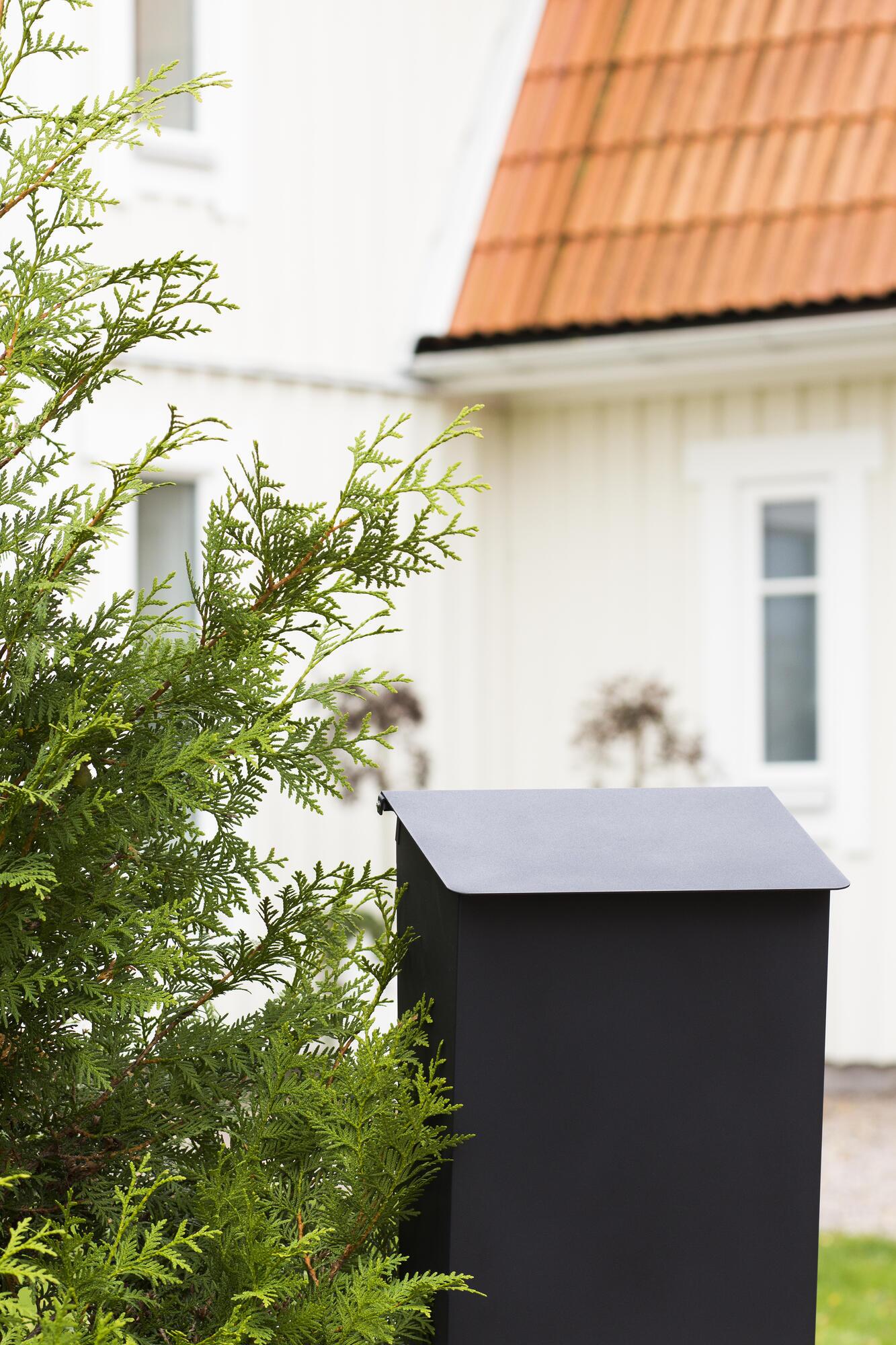 Robust og rumlig brevkasse med plads til dagens avis og post. Ekstra kraftig materiale med stramt og stilren design. Postkassen har vel gennemtænkt funktiioner med fokus på smarte detaljer: lyddæmpende låg, fuld døråbning, Skrå bund med dræningshuller. Postkassen er vandtæt og matriallet er pulverlakeret galvaniseret stål. Lågets mål 302x202 mm. R um: 25,6 ltr.