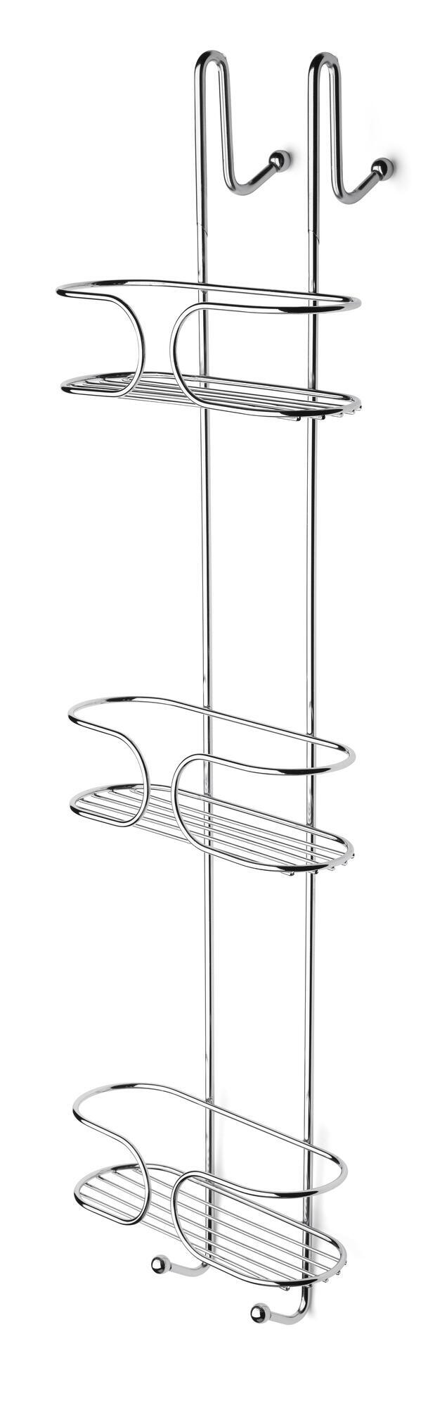 Bruserhylde i rustfrit stål. 3 Hylder til flasker etc. Hænges nemt over bruservæggen for en fugtsikker montering. Passer til armaturer med c/c 150-160 mm. 5 års rustbeskyttelsesgaranti.